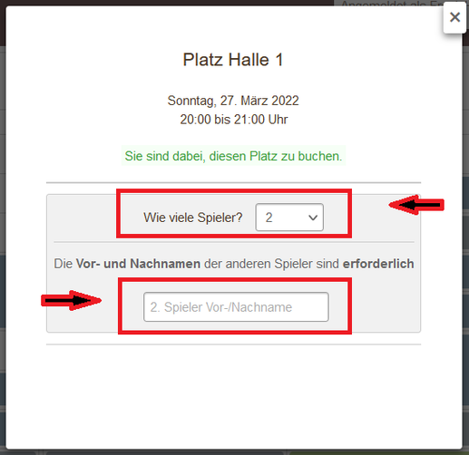 - Buchungen von Mitgliedern: Gastmarken sind für Platz 1 bis Platz 7 verfügbar und müssen im Stundenbuchungsprozess als Zusatzprodukt erworben werden. Hierzu bitte die Anzahl der Gäste angeben. Bei Buchung von zwei Gastmarken für 10€ sind 3 Gäste spielberechtigt.