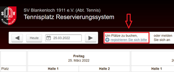 - Registrierung unter https://buchung.svb-tennis.de. Dann "registrieren Sie sich bitte" anklicken (siehe Screenshot).